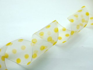 オレンジ水玉縁水色ピコットリボン25mm幅