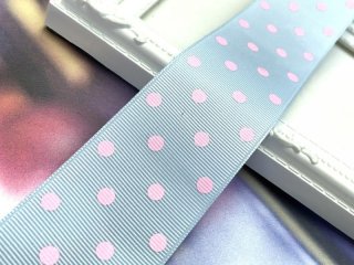大きい水玉パステルグログラン40mm幅水色にピンク
